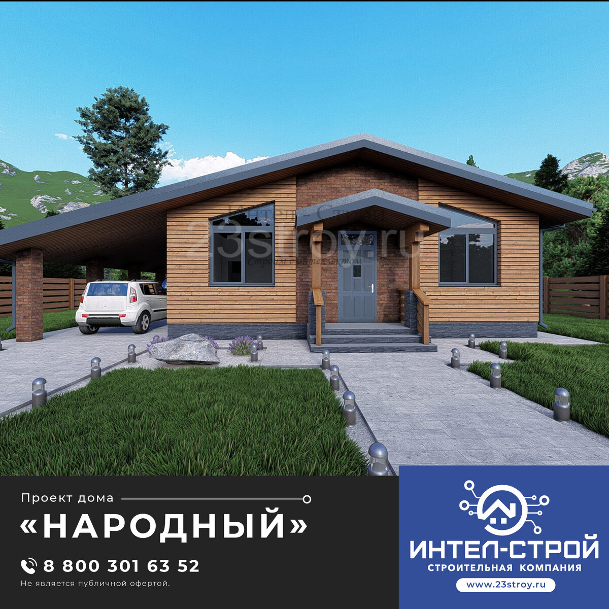 Дом с навесом для автомобиля обладает современным дизайном. Внешний вид и цветовая гамма подобраны таким образом, чтобы облик дома был интересным, но не перегруженным, и при этом спокойным и практичным. В отделке фасада мы использовали керамический кирпич и планкен. Общая площадь дома без учета террасы и навеса – 97, 3 м2. Дом, при своих небольших размерах, имеет продуманную и функциональную планировку. Грамотное зонирование помещений позволяет эффективно использовать всю доступную площадь.