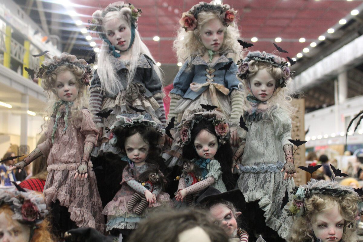 Приветствую всех в своем фейском гнезде! Сегодня расскажу про Осенний бал кукол на Тишинке. Статьи скорее всего будет две- столько фото сразу не впихнуть ,даже если очень постараться! Главным экспонатом была моя дочь Кисевна- потому что она висела у папы с слинге и всем своим видом напоминала хорошенькую куклу) Некоторые подходили и спрашивали, где мы купили такого реалистичного реборна, а потом "кукла" моргала или зевала) Умилялись все! Ребенку понравилось- она уютно спала, когда хотела и не капризничала) Не боялась чужих людей и заинтересовано рассматривала все вокруг. А теперь переходим к настоящим куклам) Текста будет в статье немного- в такие приходят картинки смотреть, чем и займемся: Куклы были самые разные- я снимала то, что интересно мне! Жизнерадостных тоже полно, просто они самые обычные-я таких и людей на улице вижу) А мне хочется что то волшебное, может пусть пугающее- но точно интересное! Каждая кукла была прекрасной, на этот раз не было каких то дилетантских работ- тол