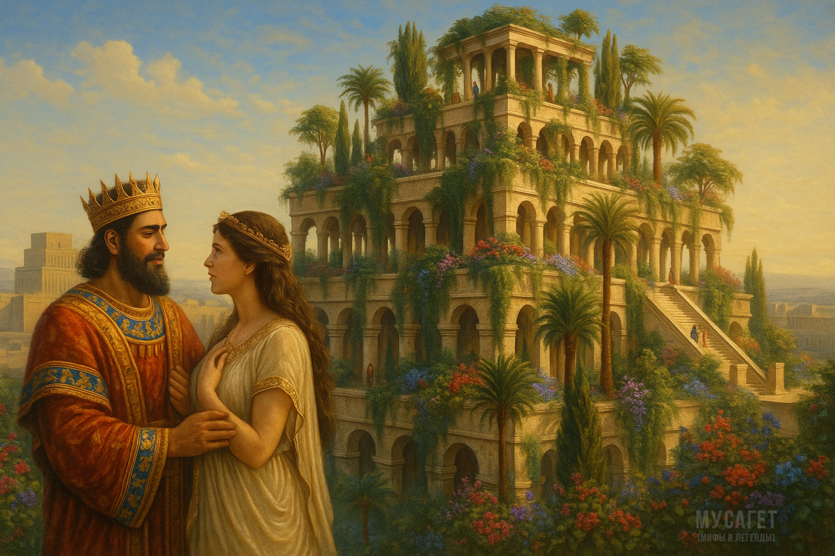 Принцесса Мидии была очень красивой и мудрой девушкой, поэтому царь сразу влюбился в нее. Но она часто грустила и практически никогда не радовалась своему пребыванию в Вавилоне. А дело было в том, что принцесса на родной земле могла любоваться красивыми растениями и природой, а Вавилон, по сравнению с Мидией, был опустошенной пустыней. Царю не нравилось, что его возлюбленная скучает и решил создать для своей любимой своеобразный оазис в пустыне Вавилона, соорудив продуманные и необычные висячие сады.
