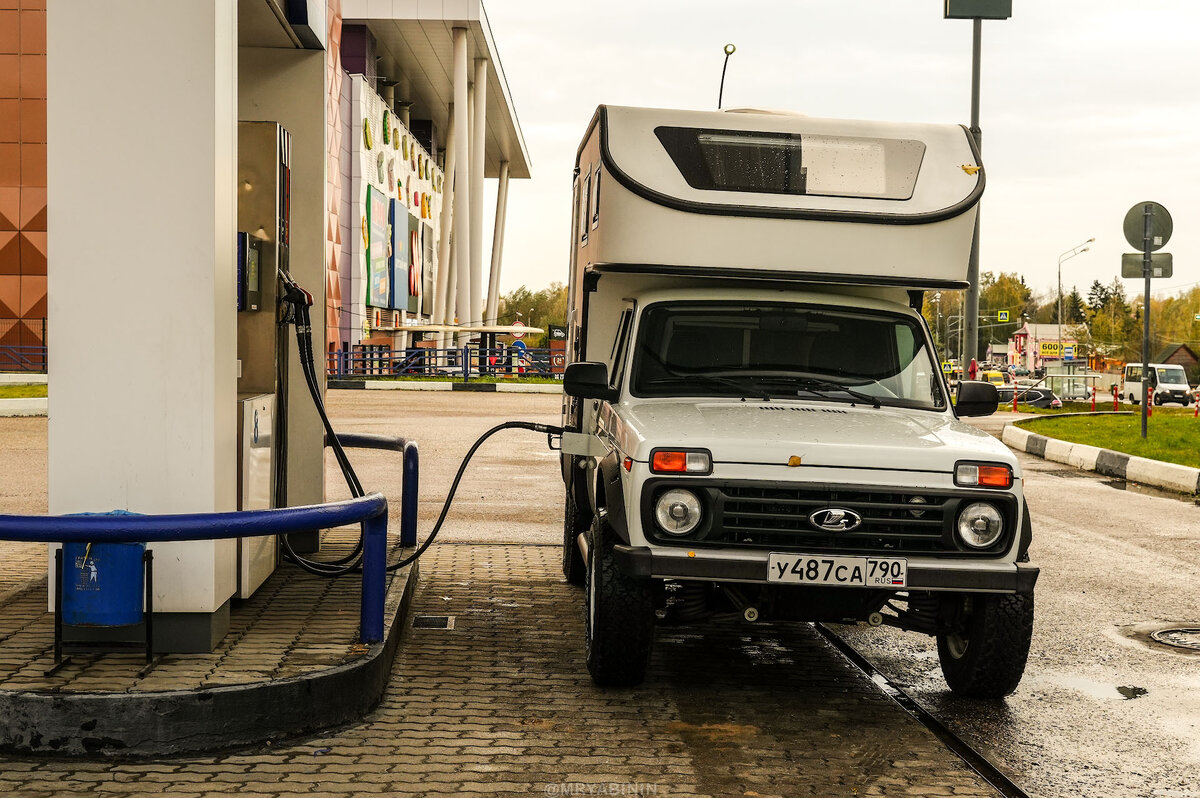 У меня было две Нивы, и я знаю о ее любви много покушать, но тут стало интересно, насколько больше стандартной Нивы будет расход у Нивы с домиком на спине. Итак, первые наблюдения... Напомню, что автомобиль совершенно новый, а значит как и в любом авто из СССР всему надо притереться и пообкататься. Проехал 190 километров. Покрутился взад-вперед и постоял с заведенным двигателем на регистрации в ГИБДД. Часов пять проработал автономный отопитель, берущий топливо из родного бака. На заправке залил 27 литров… Получается, с учетом стоянки и работы автономки расход 14.2 литра. Очень не мало, надо сказать, но все же авто потяжелее стандарта, плюс аэродинамика кирпича на взлете, а я часть пути наваливал по ЦКАД. Еще будет погрешность на заправки. Заливал до первого отстрела пистолета, а он может срабатывать по разному, потому что вазовская горловина имеет свойство плеваться. Так что будут после и другие наблюдения, а значит будет и некая средняя уточненная цифра расхода. В любом случае, пара з