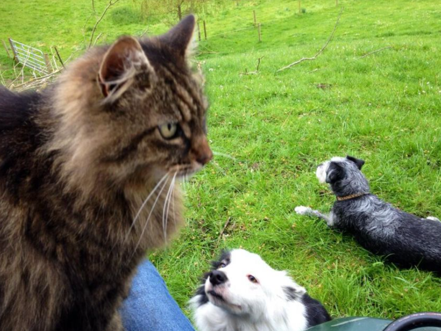 У Сюзанны Крэмптон из Ирландии есть своя ферма по выращиванию овец. Она занимается разведением этих животных на протяжении нескольких лет и все это время ей активно помогает ее прекрасный кот по кличке Смельчак. Он появился в доме девушки случайно. Владелец одного местного магазина, зная о ее любви к животным, попросил женщину взять к себе бездомного котика. Почему кот получил кличку «Смельчак» Когда мужчина подошел к Сюзанне с предложением забрать кота, она сразу согласилась. Ведь она не испытывала проблем с размером территории, дома или материальным положением. К тому же, на ее ферме проживало много животных – овцы, лошади, собаки, но не было ни одного представителя семейства кошачьих. Свою кличку серьезный кот получил за отсутствие страха при общении с крупными и иногда опасными животными. Он никогда не боялся подходить к ним. Кроме того, котик сам запрыгивал на квадроцикл хозяйки и ездил вместе с ней по делам. Такой смелостью и храбростью обладает далеко не каждый кот. Именно по