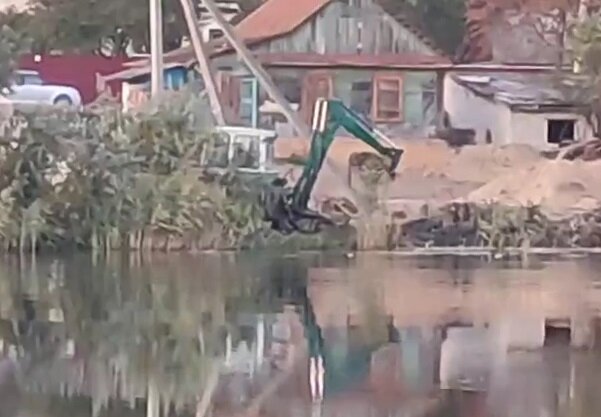 В центре Новозыбкова горожанин раскопал берег озера Карна ради личного причала