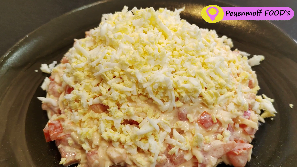 Всех приветствую! Сегодня сделаем очень вкусный и быстрый салат, который не займет у вас много времени. Такой салатик готовлю очень часто, получается нежным, сочным, просто тает во рту. Он очень вкусный! Помидоры среднего размера 2 шт. нарезать кубиками. Отправляем в салатник. Сыр, у меня голландский натереть на мелкой терке. Отправляем к помидорам в салатник. Чеснок 1 крупный зубчик или 2 мелких выдавить сразу в салатник, или можно также натереть на мелкой терке. Далее майонез 2 ст.л. Заправляем наш салат и перемешиваем. Если вы не любите майонез, можно заменить сметаной, или можно взять 1 ст.л. майонеза и 1 ст.л. сметаны. Выкладываем салатик на тарелку. Для украшения 1 вареное яйцо вкрутую натереть на мелкой терке. Посыпаем сверху, Яйцо можно перемешать и с салатом, но так салатик становится более нежным и воздушным! Наш салатик готов, можно подавать к столу. Приятного аппетита! Ингредиенты: Помидоры 2 шт.