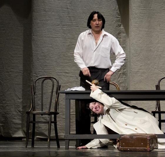 7 и 8 сентября 2011 года забайкальская драма порадовала читинцев новым спектаклем «Лунное чудовище» по пьесе Ричарда Калиноски. Событие было уникальным вдвойне. Мало того, что премьеру нового театрального сезона зрители увидели почти за месяц до его официального открытия, так ещё и история постановки интересная. Конечно, лучше участников её никто не расскажет, а потому я поговорила с художественным руководителем театра драмы народным артистом России Николаем Березиным и режиссером-постановщиком народным артистом Армении, заслуженным деятелем искусств России Александром Григоряном.