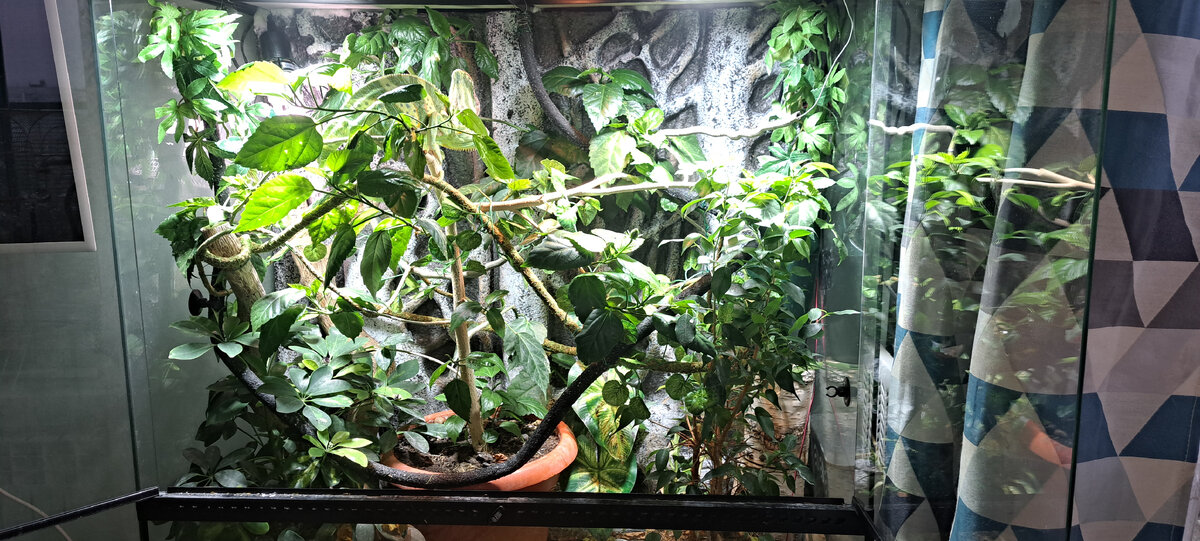 Хамелеоны – удивительные существа, обладающие невероятной способностью изменять свой цвет под окружающую среду и настроение. Чтобы полностью насладиться наблюдением за этими замечательными животными и создать для них комфортные условия, нужно правильно обустроить их террариум. Размер террариума для хамелеона Первое, на что стоит обратить внимание – размер террариума. Для взрослого хамелеона нужен просторный и высокий домик. Он должен быть не менее 60 сантиметров в высоту для самок и не менее 90 сантиметров для самцов, и иметь достаточное количество горизонтальной площади для движения. Температура и освещение Важным аспектом содержания хамелеонов является температурный режим. В террариуме должно быть две зоны – теплая и прохладная. В лампе, установленной над террариумом, следует использовать УФ-излучение, которое поможет рептилии синтезировать витамин D3 и обеспечит ее здоровье. Необходимый декор Внутри террариума необходимо создать подходящую растительность. Хамелеонам нужны ветки р