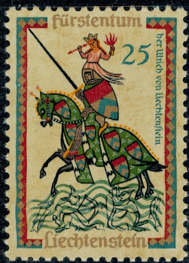 Законы рыцарской чести были общеприняты в 11-м веке. Спустя 200 лет тот, кто пытался жить по ним, уже вызывал насмешки. Год издания: 1961 Страна: Лихтенштейн Маленький Ульрих родился в не очень знатной дворянской семье. В 12 лет его отдали в пажи к придворной даме. В её доме мальчика больше всего привлекла библиотека, где он с жадностью проглотил все имевшиеся рыцарские романы. Его потрясли рассказы о короле Артуре, написанные Кретьеном де Труа. В 1227 году юного Ульриха посвятили в рыцари, и он стал пытаться жить по законам чести, придуманным несколько веков назад. Подробных свидетельств о жизни фон Лихтенштейна не сохранилось, но многие считают, что написанная им от первого лица книга «Служение дамам» автобиографична. Герой книги, а значит и сам Ульрих, во имя своей Прекрасной дамы задирает каждого встречного рыцаря. Во время не очень дальнего путешествия из Венеции в Вену Ульрих умудрился в постоянных стычках поломать 307 копий. С каждым своим соперником на турнирах фон Лихтенштейн