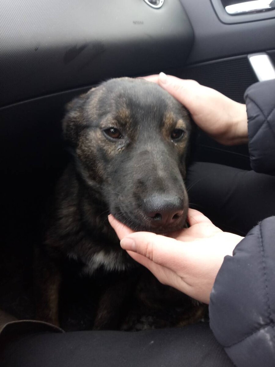 Произошла эта история 30 декабря 2018 года, в канун Нового года. Был ужасно морозный день, ледяной ветер, метель. Мы приехали на кормежку, навестили своих подопечных, накормили и уже собирались ехать домой. И тут Сережа за забором увидел его… Всех местных собак мы знали и кормили, а его раньше никогда не видели. Мы пошли к нему, пес скулил и просил о помощи. Он был настолько измучен, что уже не мог идти и практически полз на запах еды. Сергей помог пролезть ему в дырку под забором, и мы стали его кормить. Ел он не жуя, просто глотал на ходу и трясся от холода. Безусловно, выживать в наших суровых зимах и морозах очень тяжело всем бездомышам, но есть те кто уже приспособился. Кто- то выживает на трубах, кто-то прибился к предприятиям, другие находят укрытие в разрушенных зданиях или наоборот недостроях. А этот паренек был настолько испуган, растерян и потерян, что было ясно он не выживет. Возможно его кто-то выкинул и он раньше был домашним, поэтому совершено не знает улицу и не умее