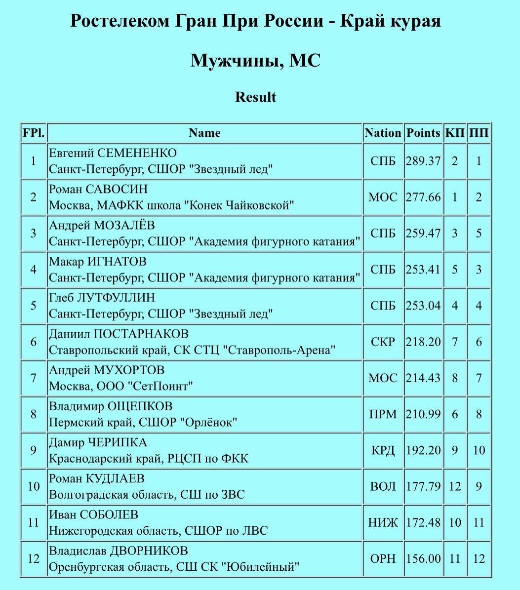 У мужчин-одиночников завершился первый этап российской серии Гран-при.