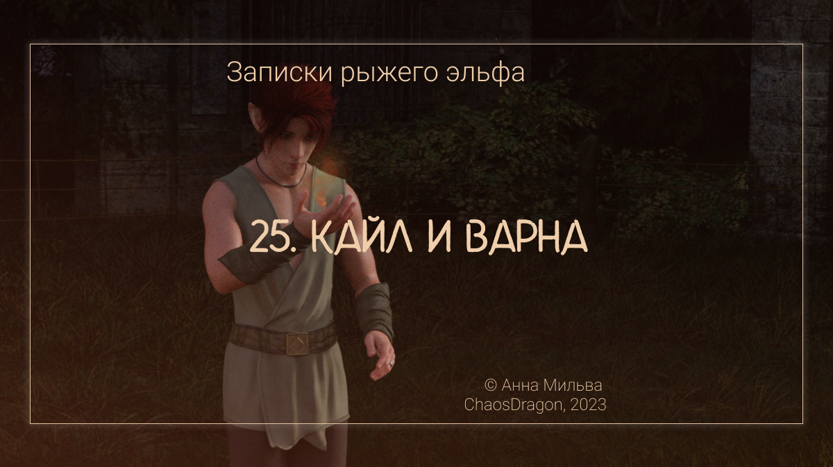 Ночью того же дня я снова выбрался на тренировочную площадку. Надо сказать, было трудновато, пришлось много прятаться. Не так, как когда я пробирался к Вратам, но всё равно… Мне хотелось испробовать себя по части магии. В городе я ей совсем не пользовался и теперь боялся, что всё забыл. И без того я был не самым прилежным учеником. Куртку снова скинул, чтобы не сковывала движения, и волосы завязал в хвост. Начал с того, что зажёг на ладони небольшой огонёк. Одно время любил таким образом сосредотачиваться для последующих уроков: заклинание несложное, и для подобного отлично годилось. — Тебе уже разрешили магичить? — Варна?! Хаос, что здесь забыла сестра?! Лучший маг Дома, она вполне могла стереть и меня, и саму память обо мне, а о том, чтобы быть даже вполовину таким же искусным, как она, я не мог и мечтать. — Ну-ка, посмотрим, что ты ещё помнишь. — Варна, нет, я не… — Становись вон туда! В руке сестры появился сгусток энергии, и я поспешил занять указанную позицию. Только я повернулся