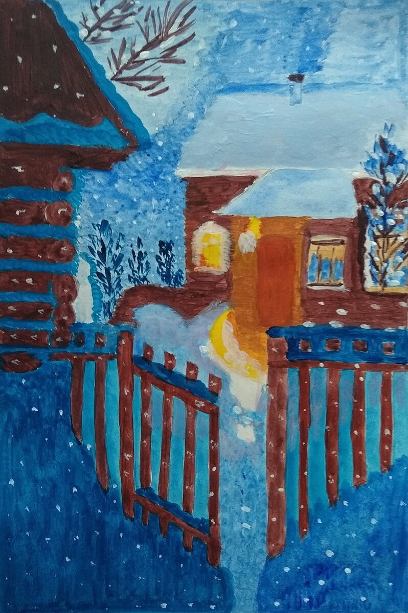 Автор стихов: Елена Бычихина Бумага 30х40 см. Акрил. В морозном воздухе дымок