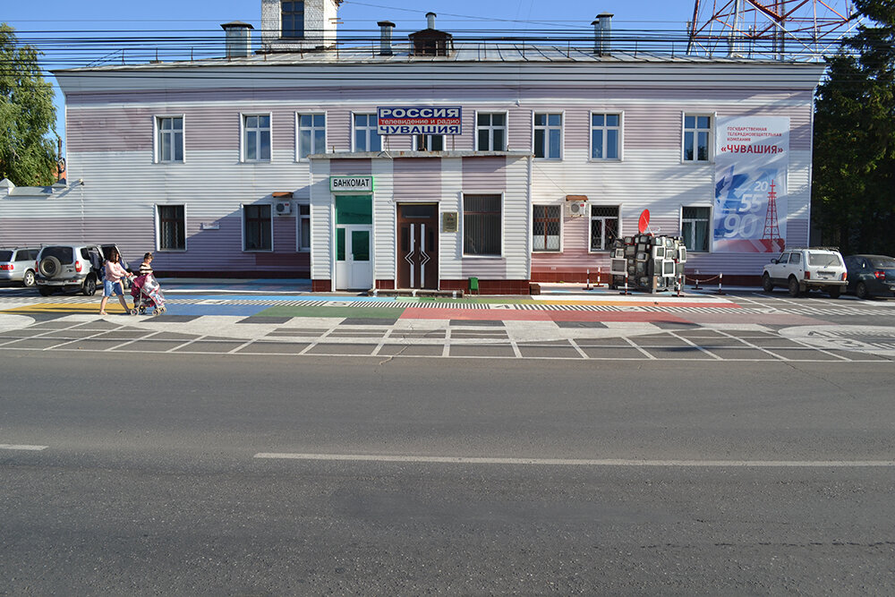 Как-то прогуливаясь в Чебоксарах и проходя мимо офиса ВГТРК, обратил внимание как красиво они украсили входную группу в здание.