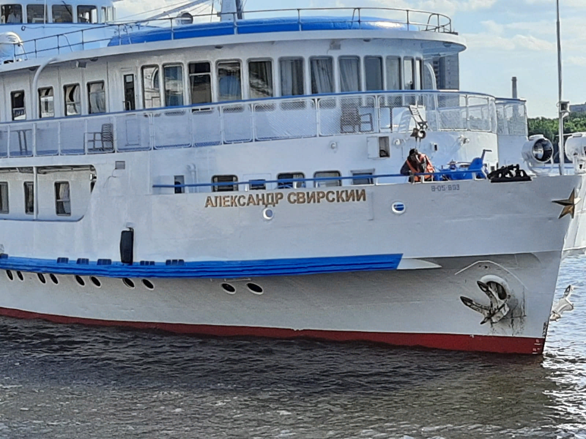 Я много раз посещал морские прогулки и один раз даже совершил морской круиз на круизном лайнере Олимпия по прибрежным островам Греции. Все было отлично, за исключением того, что на лайнере не было русского гида. Бывал на речных прогулках в России и хотелось совершить еще, но хотелось более теплой погоды. Вот, наконец, на 10 июня я спланировал 2-х дневный речной круиз с сыном по маршруту Москва - Хвойный бор - Москва. Хвойный бор находится приблизительно в 40 километрах к северу от Москвы и мне захотелось на первый раз совершить короткую речную прогулку и подробнее узнать бытовые условия. Путевку на круиз оформил по интернету с круизной компанией Волга лайн на теплоход Александр Свирский. После оплаты мне прислали 2-х местный бронь в 15 каюту на третьем этаже теплохода. В день поездки, после обеда пораньше мы с сыном направились на Северный речной вокзал, находящийся в шаговой доступности от нашего дома. Решили, что прогуляемся и ознакомимся с достопримечательностями Северного речного вокзала, поскольку его недавно отреставрировали. Пеший путь занял минут 30 и, наконец, мы дошли до речного вокзала и прогулялись по набережной, где на причалах стояли несколько теплоходов. Нашего теплохода на причалах не оказалось. После небольшой прогулки мы зашли в здание речного вокзала, и я поинтересовался у администратора, откуда отчаливает теплоход Александр Свирский. Вы находитесь на территории речного вокзала, объяснил администратор, а теплоход Александр Свирский отчаливает с -1 причала на территории речного порта. Вот тебе на, все поделили, подумал я и поинтересовался, как туда пройти. Пройдите налево от речного вокзала и там увидите синие ворота, объяснил администратор. Мы направились по указанному маршруту. Вообще то, речной порт занимается грузовыми перевозками, видимо, решили разнообразить услуги, подумал я. На речном порту, на проходной, мы еще раз поинтересовались теплоходом Александр Свирский. Минус 1 причал, объяснил охранник. Мы прошли на набережную, где обнаружили огромное количество теплоходов и еще больше народу, но нашего теплохода на причале не оказалось. Если территория Северного речного вокзала оборудована по высшему классу с местами для ожидания и кафе, то здесь в речном порту не было ничего. Ни скамеек, ни кафе, нет даже урн для мусора. От долгого стояния, многие, ожидающие теплоход, туристы присели на бордюры. Дети хнычут, некоторые плачут. Хорошо, что мы подошли заранее, подумал я, а то разобраться во всем этом хаосе было бы довольно сложно. Вскоре подошел теплоход Башкортостан и за ним причалил теплоход Александр Свирский. По документам, присланным мне, посадка начинается в 15.00 и теплоход отчаливает в 17.00. Дополнительно указано, что необходимо прибывать за 2-3 часа до отплытия. Прямо, как на самолет, подумал я. Конечно, с речного вокзала это было бы проще, но с речного порта, где все это время приходится стоять, трудновато. Необходимо учитывать, что теплоход это не самолет и не поезд, где все строго регламентировано. На водном транспорте все делается намного медленнее и поэтому больше бюрократии. В 15.00 мы прошли через теплоход Башкортостан на теплоход Александр Свирский, но девушка в регистратуре объяснила, что посадка начнется в 16.00 и мы вернулись обратно на причал. В 16.00 мы с сыном снова прошли через теплоход Башкортостан на тепло