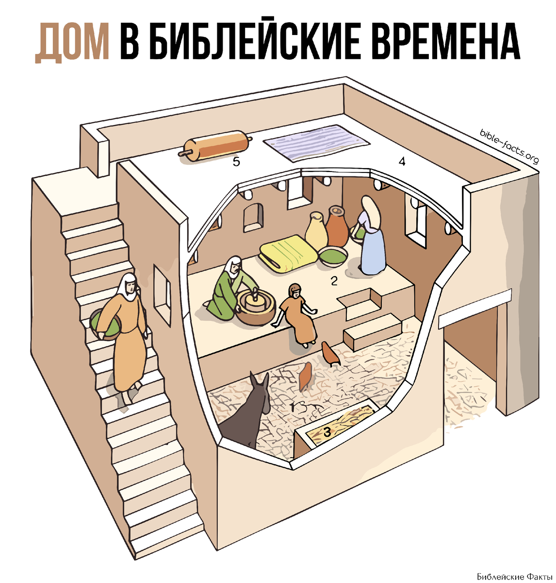 У иудеев было принято иметь в доме небольшое количество скота, который зачастую обитал на первом этаже. Тем самым животные были защищены от воров. Кроме того, теплом своего тела они поддерживали температуру в доме в холодные ночи. • Больше интересных Библейских Фактов • Библейские факты сайт