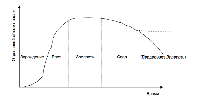 А какая у нас стадия жизни отрасли? Важный вопрос, потому что каждый период жизни отрасли дает разные возможности и «осложнения».
