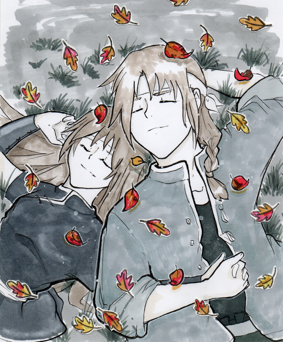 Вот и половина инктобера прошла. Раньше я больше 15 дней не выдерживала. Тупо не хватало времени и сил. В этот раз решилась немного себя пожалеть и пропускать дни, если из-за более насущных дел приходиться откладывать рисование. Будет желание, нагоню. Первые два дня все было в "традишке": карандаш, тушь, маркеры. Однако я понимаю, что в "традишке" из-за моего графика я просто-напросто выдохнусь к концу недели. А потому в этом году перешла на "цифру". Хотя бы спать ложусь в первом часу ночи, а не ближе к трём. Погнали, что ли? День 1: Сон, мечта, фантазировать Это одновременно и мечта Ксюши, и в то же время безмятежный сон с младшим братом. Справа Антон, если что. Младший брат ГГ. День 2: Пауки Бррр! Не люблю их. А потому неунывающая Цен-зу осенью. И да, в углах затесались пауки. День 3: Путь, направление, контур. У Ксении есть только один путь: путь человека, который считает, что раз ей надо, то так и должно быть. По крайнем мере, по отношению к Эду и Мике. Вот и сейчас она без т