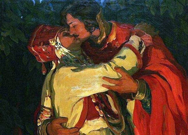 В Древней Греции и Древнем Риме поцелуи были распространены, но в Средние века они были запрещены из-за эпидемий оспы и чумы. Христианская церковь вернула моду на поцелуи, но только в форме троекратного поцелуя в щеку при встрече. В России соблюдение религиозных канонов было строго контролируемо, особенно в состоятельных семьях, где жены имели большую власть.