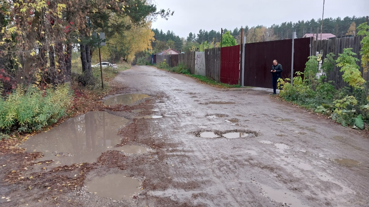 Воскресенье 15 октября выдалось пасмурным днём. Кстати, по прогнозу дождь обещали в субботу и воскресенье на целый день. Он пошёл лишь вечером субботы, когда стемнело. И до этого дожди шли пару раз среди недели. Поэтому дорога от станции до дачи изобиловала лужами: