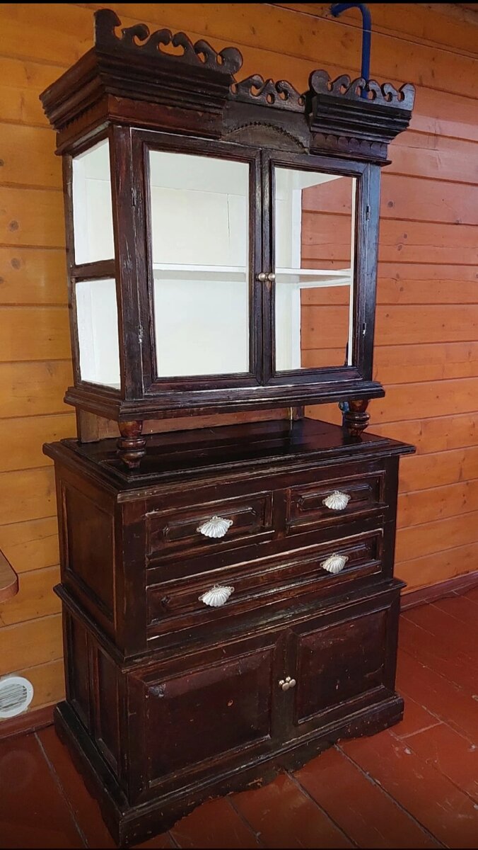 Разбираю, ломаю буквально на щепки, так и происходит с мебелью, которую беру на "реставрацию". В основном просят восстановить старые кухонные буфеты. Вот пример одного из них. В таком состоянии заношу буфет в мастерскую или разбираю в мастерской, в зависимости от времени года. На этом этапе будет понятно, что подлежит замене, а что вернется на своё место. Чаще всего изготавливаю новую столешницу, меняю дно, задние стенки, полки, вырезаю новые стекла. После разборки приступаю к самой тяжелой части данной работы. Это снятие старого лака, краски, минимум 3-4 слоя. В дело идёт все, что имеется в мастерской. Фен, скребки, шлифмашинка, шкурки, резаки и т.д. После очистки от старого покрытия можно приступать к сборке. На этом этапе становится интереснее. Появляется общий облик буфета. Для этого буфета изготовил новые штапики, т.к. не все сохранились в наличии. Также, как и писал выше, сделал столешницу, заменил дно, полки, заднюю стенку. Стекол изначально не было, будут новые. Работа по