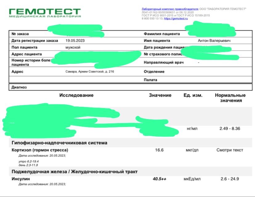 Еще немного и результат попадёт в «нормальное значение». Не совсем понятно, почему инсулин 24 это норма, учитывая, что с таким показателем 100% есть инсулинорезистентность. Может это только в этой лаборатории так…