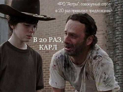 Разместили 5% free-float по максимальной цене в 333 руб. «СОВОКУПНЫЙ СПРОС В 20 РАЗ ПРЕВЫСИЛ ПРЕДЛОЖЕНИЕ». Другими словами, инвесторы были готовы вложить в IPO Астры столько денег, сколько бы хватило, чтобы выкупить все 100% Астры, а не предложенные нам 5%. Здесь невольно задаешься вопросом: А если бы и правда на IPO вывели 100% Астры, то в этом случае при всех прочих равных спрос тоже покрыл бы 100%? Или хотя бы половину? Или сколько? Да даже если бы на IPO выводили какие-нибудь более-менее адекватные 10-15%, то тоже был бы точно такой же бешеный спрос? Конечно, 20-кратный спрос - это не совсем достоверно, а, скорее, громкая и раздувающая авторитет Астры цифра, которую по-хорошему надо бы скорректировать на изначально созданное у нас ожидание низкой аллокации, о которой брокеры кричали прямо с порога. Ведь, ожидая мизерную аллокацию, многие инвесторы изначально предъявляли для участия в IPO в разы бОльшие суммы, чем