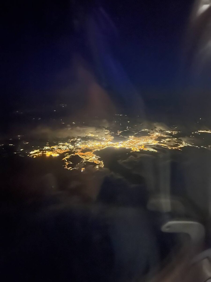 Погода ясная, времени около 20:00. Место у меня около иллюминатора. Гляжу в окно и вижу по левому борту огни Таллинна.