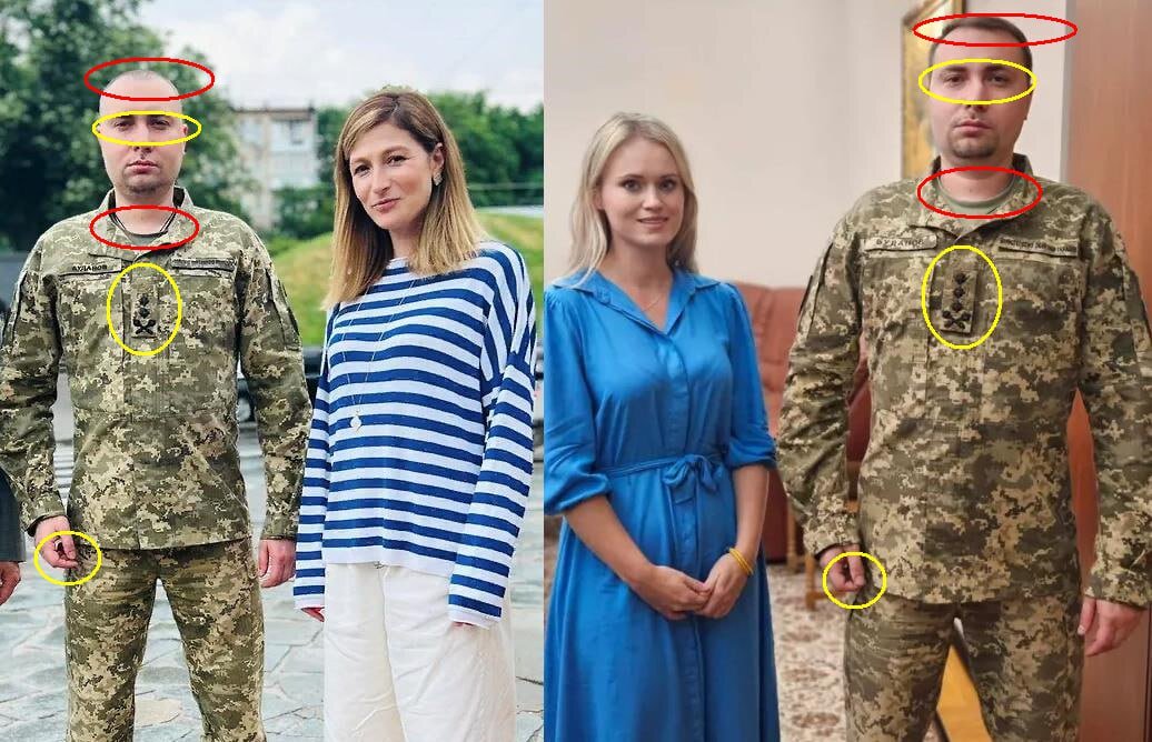 Умельцы не поленились и сравнили кадры, найдя отличия в летней и осенней версиях. Отметили несколько меняющийся прищур глаз, новое звание – теперь Буданов генерал-лейтенант, а также новую стрижку, чуть более загнутый указательный палец и цепочку. В остальном тело на фотографиях идентично.