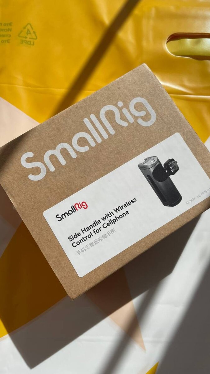 В процессе съёмок при нажатии кнопки на экране терял всегда 1-2 секунды и их вечно приходилось отрезать, то же самое и при завершении работы. Решил докупить себе к клетке ручку с кнопкой записи, расскажу об опыте использования, минусах и плюсах этого девайса. Покупал с целью потом использовать на других клетках small rig так как до Iphone 14 они вроде как все одинаковы по креплениям и болтам, надеюсь не ошибся. Приобрел девайс 12 сентября 2023 года, сейчас (момент написания статьи) 17 октября 2023 года активно использую ее на выездных съёмках, а также как внешний пульт при фотографировании \ видеосъёмке рецептов на кухне, чтобы не создавать тряски при съёмке. На момент приобретения мной она (ручка) стоила 4 361 рубль уже с доставкой в ближайший пункт выдачи. Вскрываем коробочку Прикрутил к своей клетке на которой уже установлена другая ручка от того же производителя, а именно Small rig 2772 Мне больше всего не понравилось отсутствие места под шестигранник, в ручке 2772 он как ра