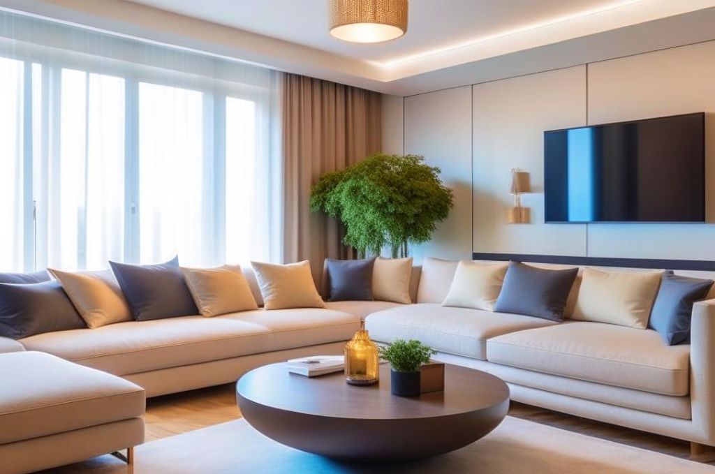 Световые акценты играют важную роль в дизайне гостиной, создавая атмосферу и оживляя пространство. Использование света как элемента декора позволяет подчеркнуть особенности интерьера, выделить определенные зоны и добавить визуального интереса. Одним из способов привлечения внимания к определенной области является использование направленного света. Настенные светильники или прожекторы могут быть установлены таким образом, чтобы подсветить картины, полки с книгами или другие декоративные элементы. Это помогает создать фокусировку в пространстве и сделать его более интересным для взгляда. Также световые акценты могут быть использованы для выделения архитектурных деталей или интересных конструкций в гостиной. Например, установка подсветки около столбов или колонн создает эффект глубины и добавляет стройности интерьеру. Подсветка стен или потолка также способна придать комнате уникальный характер и завершить общий образ. Дополнительные световые источники, такие как настольные лампы или то
