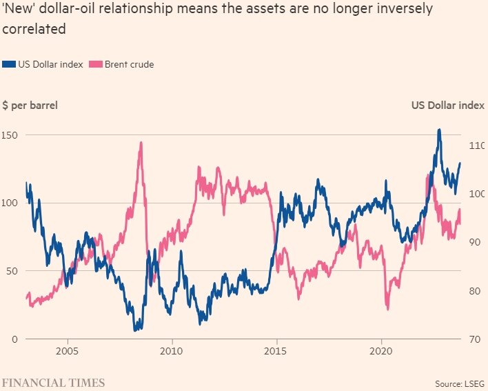 Изменение исторических отношений доллара с нефтью все больше влияет на экономику и рынки.