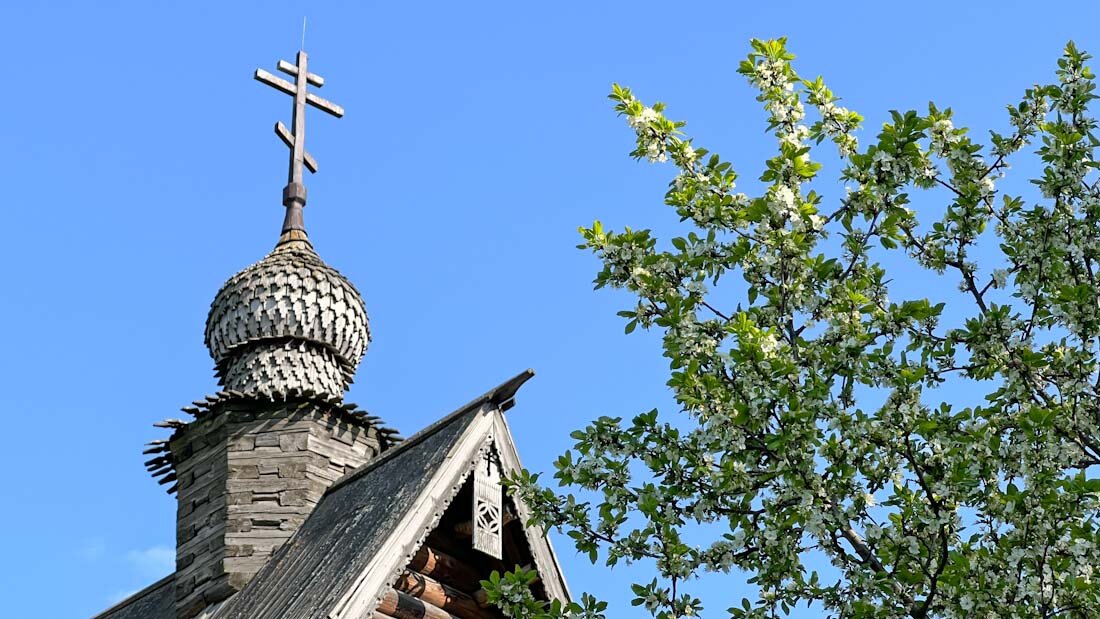 В Михайло-Архангельском монастыре лемех украшает несколько глав - Георгиевскую церковь (1718г.) и шатровую колокольню (1683г.) Этот элемент придает постройкам замысловато