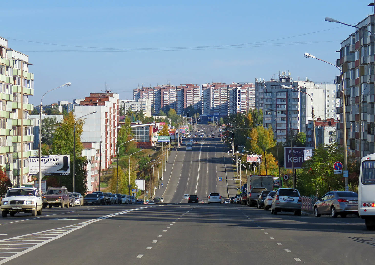 За которым мы вышли на улицу Карла Маркса. Она в Новом городе одна из трёх осей, идущих параллельно Ангаре в паре километров от берега. Но если средний проспект Мира - очевидная главная улица, а верхний проспект Дружбы Народов - тихие задворки у трамвайных путей, то нижняя улица Карла Маркса - объездная: