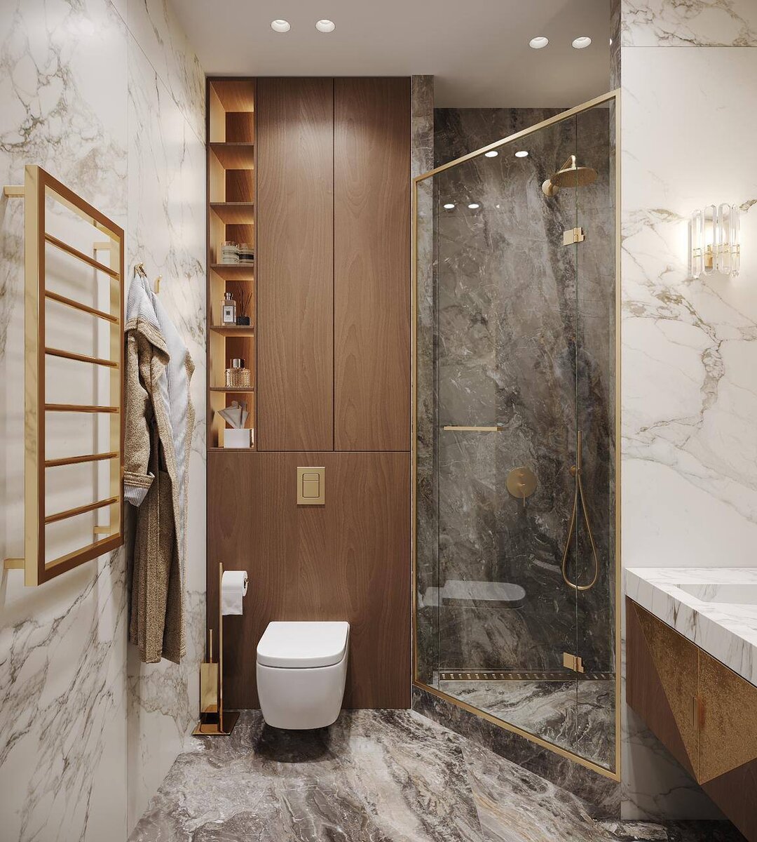 В этом ваши "помощники": 1 Дизайн-проект ванной комнаты в ЖК Кутузовский Выполнен в современном стиле. Функциональность Важное правило в современном д