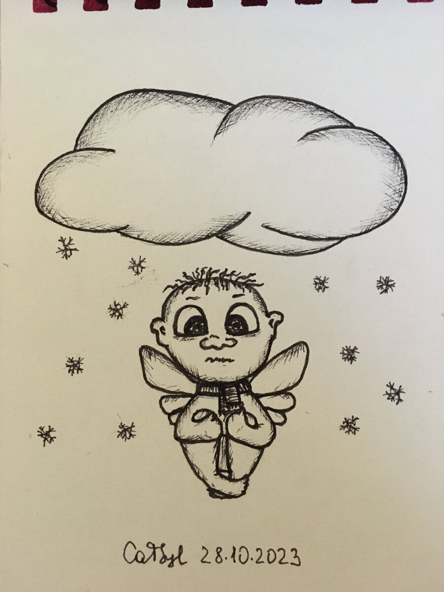 Предпоследняя порция зарисовок в предпоследний день. (Не факт, что успею последнюю) #20 Мороз Возможно, ангелы тоже мерзнут. Они же не в пуховиках и шубах. Я своему хоть шарфик пририсовала. #21 Цепи Если нет давно дождя, нужно его как-то выжать из тучи. #22 Колючий Кто, как не ёжик подходит под тему колючести? #23 Небесный У меня все темы околонебесные, но тут больше облаков добавила. #24 Мелководье Самое то - только помочить ножки для тех, кто предпочитает облака воде. #25 Опасный Внимание, опасный трюк. Не скакание на коне, а летание на птице. #26 Удалять Болезненная тема больных зубов. Иногда их нужно удалять((( Порция ангелочков закончилась. #Inktoberdzen