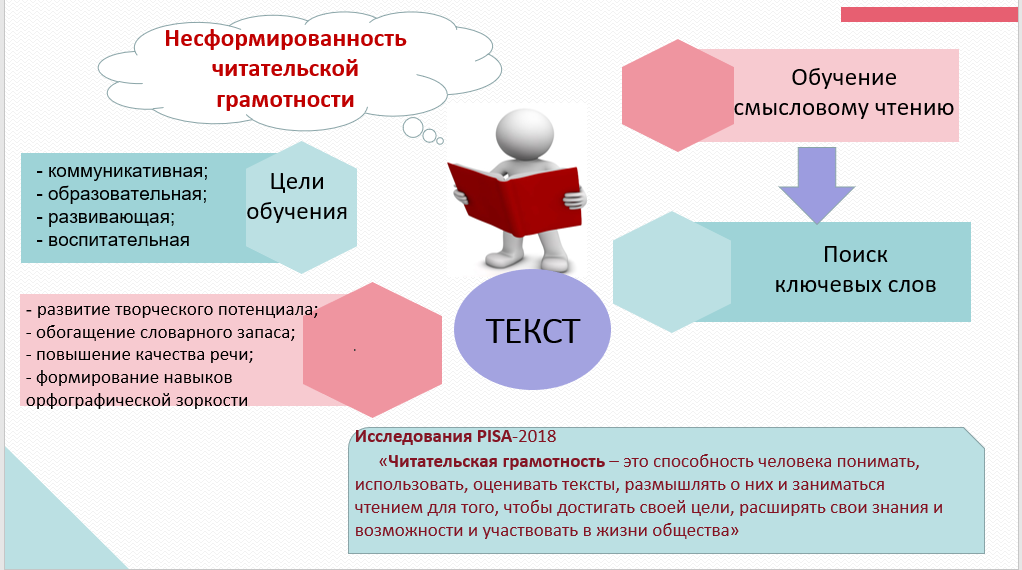 – Действительно, одной из основных проблем в начальной школе является несформированность читательской грамотности. Ученики не всегда могут осознанно прочитать текст, объяснить значение слов, выражений, которые они встретили в тексте. Поэтому на всех школьных предметах без исключения должна проводиться работа с текстом. Ведь она является эффективной формой развития творческого потенциала учащихся, расширения их словарного запаса, улучшения качества речи. Через текст реализуются все цели обучения в их комплексе: коммуникативная, образовательная, развивающая, воспитательная.