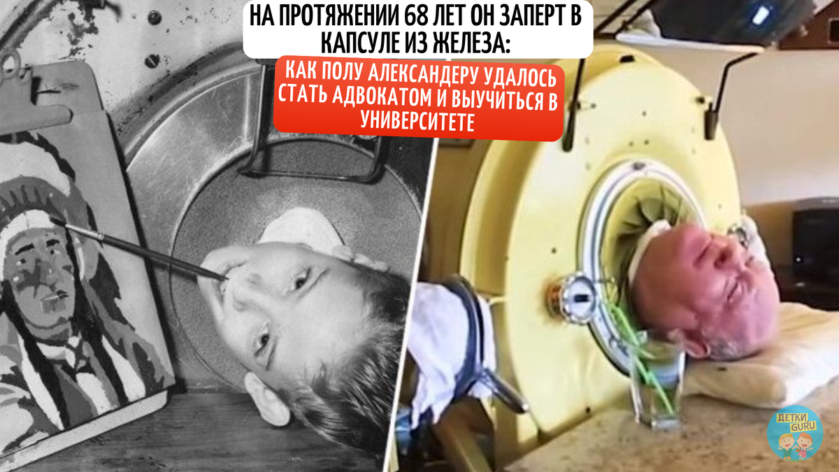 С помощью «волшебной» палочки, которую ему смастерил отец, Пол может рисовать и писать. На протяжении 68 лет Пол живет в железной капсуле, но это не мешает ему нормально жить.