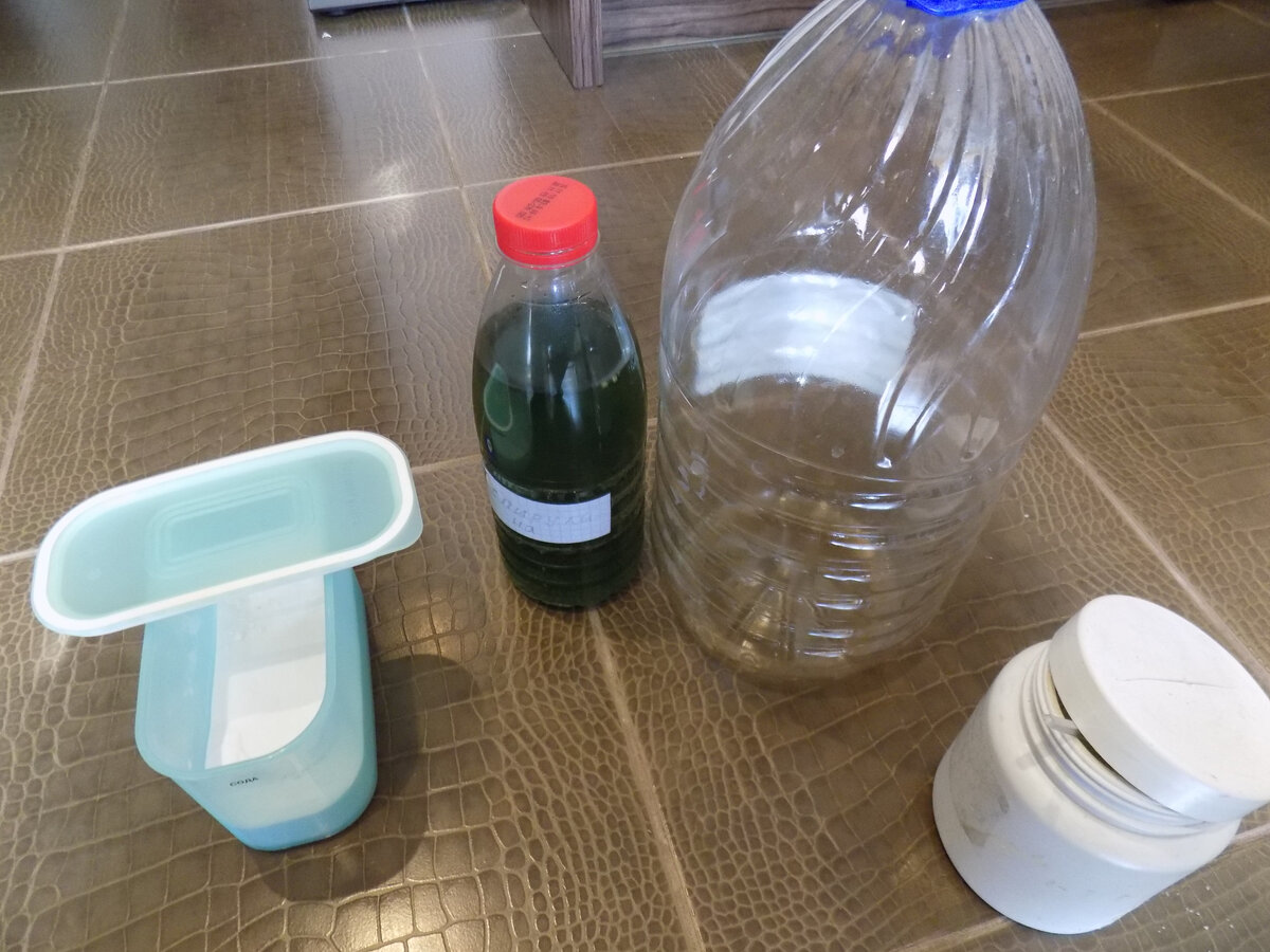 Краткая инструкция по просьбам телезрителей. Кому интересно - группа в ВК Сразу предупреждаю, спирулину выращенную таким способом я использую в аквариумных целях, а именно, для кормления пресноводного планктона. Оптимальная емкость - ПЭТ бутыль 5 литров, удобно контролировать удобно работать и наблюдать, всегда можно найти бесплатно. В 5 литровку наливаем живую культуру, чем больше будет культуры чем быстрее произойдет размножение. Обычно 0,5 л. водоросли(маточного раствора) на 4,5 литра воды более чем достаточно чтобы через 2-3 недели получить хорошую концентрацию. Когда нужно получить популяцию спирулины быстрее, то заливаю в 5 литровку 1,5 л. маточного раствора (раствор с максимальной концентрацией водорослей). Добавляем воду, вносим NPK удобрение 1/4 чайной ложки. Добавляем пищевую соду 1-2 чайных ложек, запускаем аэрацию ставим в освещенное место. Главное, чтобы солнце не перегревало емкость. Температура в диапазоне от +14 до +28. Вода отстоянная водопроводная или отстоянн