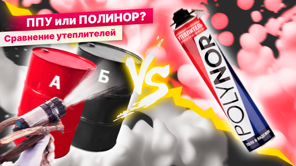 В данном исследовании мы сравним два популярных материала утепления: напыление пенополиуретана (ППУ) и полинора (однокомпонентный пенный полиуретан), который так же наносится путём напыления .