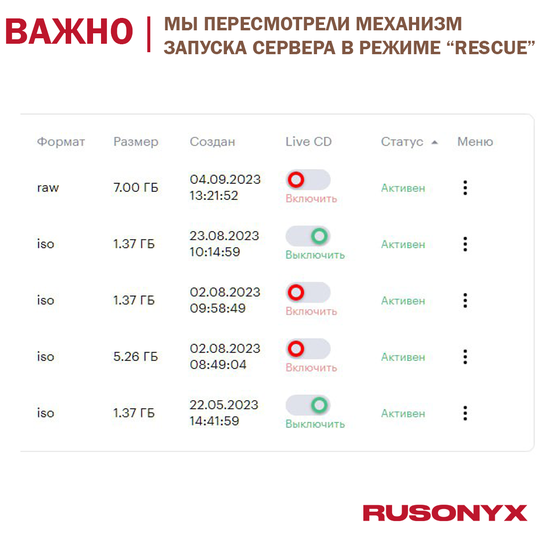 Наша команда продолжает совершенствовать сервисы Rusonyx для вашей более комфортной и безопасной работы. Сегодня рады поделиться важным обновлением для сервисов на базе OpenStack. Теперь любой образ, загруженный вами, можно сделать в формате Live CD.