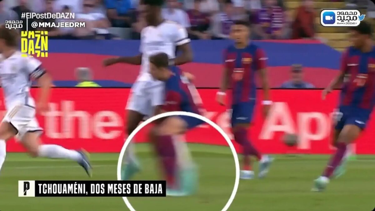 Орельен Тчуамени завершил Класико с серьезной травмой ноги. «Реал Мадрид» подтвердил, что это перелом плюсневой кости, и полузащитник не сможет выйти на поле в течение следующих двух месяцев. В социальных сетях завирусились кадры, когда Тчуамени получил травму. Стали говорить о том, что это произошло после столкновения с Гави в конце второго тайма. Речь об этом эпизоде: Гави сталкивается с Тчуамени. Тчуамени сразу начинает хромать. Чуамени останавливается, чтобы проверить свою ногу, когда Гави отходит. Позже у него диагностировали серьезную травму. Гави за этот подкат не получил предупреждения. Футболит «Мадрида» призвал не винить в своей неудаче игрока «Барселоны». Орельен в социальных сетях выложил фрагмент матча, подписав: «Это не вина Гави. Я получил травму сам, в конце первого тайма». Какой именно эпизод стал роковым Тчуамени не уточняет, но в любом случае желание уберечь Гави от травли в интернете - достойный жест.