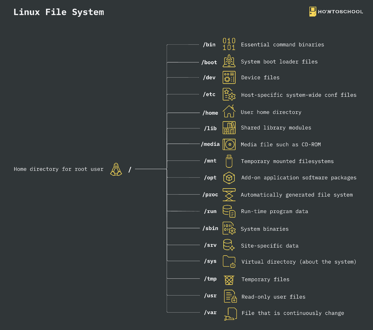 Файловая система Linux раньше напоминала неорганизованный город, где люди строили свои дома там, где им заблагорассудится. Однако в 1994 году был введен стандарт иерархии файловой системы (FHS). Благодаря внедрению такого стандарта, как FHS, программное обеспечение может обеспечить единообразие структуры в различных дистрибутивах Linux. Тем не менее, не все дистрибутивы Linuxстрого придерживаются этого стандарта. P.S. Какие команды Linux помогут Вам в навигации по файловой системе?