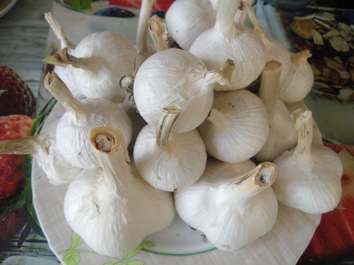 Сегодня я хотела бы написать о луке-чесноке "Рокамболь". Рокамболь (научное название — лук причесночный) объединяет признаки лука-порея и чеснока. Лук- чеснок вырастает по размеру намного больше чем зимний чеснок. Хотя зимний чеснок, при правильном уходе, тоже может вырасти больших размеров. Рокамболь я сажаю уже лет восемь. Некоторые не любят эту культуру. А мне нравится лук-чеснок. Особого ухода за ним нет. Что касается полезных минералов, то в составе данного сорта присутствуют: магний, калий, селен, железо, цинк, медь, натрий и еще множество других полезных элементов, которые оказывают положительное воздействие на организм. Почти все вышеперечисленные витамины и полезные минералы содержатся не только в зубчиках лука-чеснока, но и в его листьях, которые широко употребляются для кулинарных и медицинских целей. Лук-чеснок, я в основном использую для приготовления бульонов для супов, добавляю при тушении мясных блюд и т.д. Лук-чеснок придаёт бульону и блюдам приятный запах и вкус. В