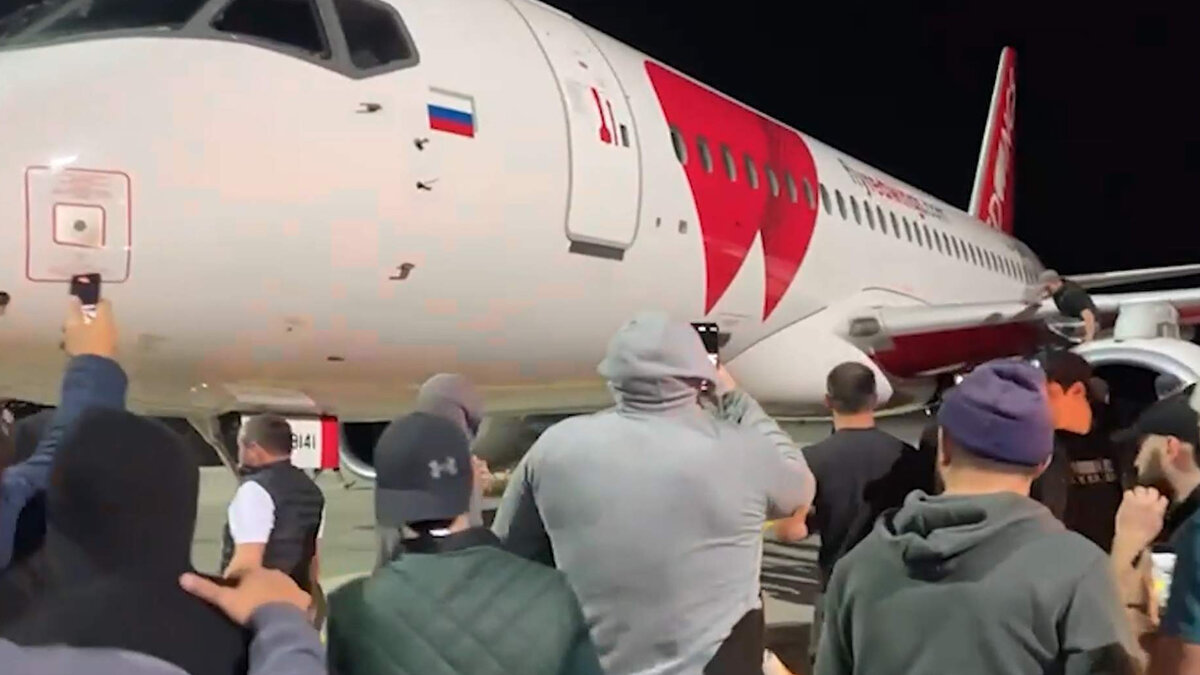 Протестующие прорвались в здание международного терминала аэропорта и сломали двери, ведущие в терминал. У некоторых людей в руках были флаги Палестины. После этого они выбежали на взлетно-посадочную полосу и пытались попасть внутрь одного из самолетов, забираясь прямо по крылу воздушного судна.