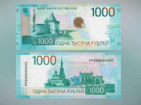 А что если сделать купюру с аскетическим дизайном? К примеру, на бумаге нейтрального цвета (оранжевого) с тремя видами водяных знаков пишем с одной стороны цифру "1000", а с другой буквами "одна тысяча рублей". Делаем металлические защитные нити. Можно нанести микроизображения в виде геометрических фигур - квадратов, треугольников, кругов, трапеций. Рисуем QR-код, переливающиеся элементы (без рисунка), метки для слабовидящих и т.д.