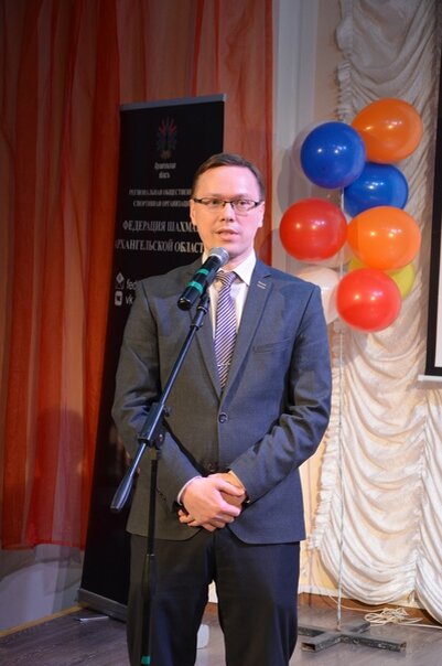 Вслед за этим поздравил всех присутствующих с праздником и произнёс речь депутат Государственной Думы, председатель Архангельской региональной общественной организации «Спортивная федерация шахмат» Юрков Дмитрий Васильевич.