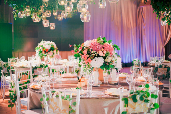 Сложно придумать событие более значимое, чем свадьба. Поэтому подготовка к ней проходит очень тщательно. Особое внимание уделяют оформлению праздничного зала, важной частью чего является декор люстры, при котором, как правило, используются живые цветы. Эта традиция пришла к нам с запада. Католические обычаи предполагают при венчании декорирование костела и свадебной арки цветами. Что может создать более романтическую свадебную атмосферу, чем живые цветы? Цветочная люстра Самое популярное решение в украшении свадебных светильников – их исполнение в цветочном декоре. Бутоны прикрепляются к элементам лампы с помощью лент. Цветочные композиции, свисающие с потолка, – очень изысканное решение для свадьбы Как вы видите по фото, здесь невозможно переборщить. Украшать люстры можно как полностью, так и частично. Все зависит от вашей фантазии и от желания «покреативить». Главное – соблюдать единый стиль в декоре. Цветочные венки Не менее популярно среди молодоженов и украшение потолка цветочным
