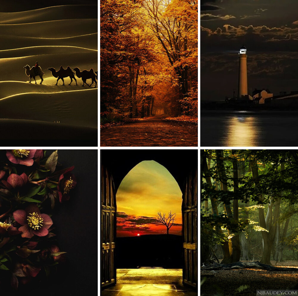 Оттенки темной осени таинственные. Они напоминают о дикой природе, густых лесах и джунглях, ночных пустынях, последних мгновениях заката, когда земля темнее, но немного тепла все еще остается. Эти оттенки вызывают ощущение чего-то скрытого, мистического. Мы видим оттенки темной осени в окраске тигров и леопардов, в сочных и интенсивных маракуйе, инжире и сливе, в кофе и какао, во всех видах специй и сухоцветах. Палитра Оттенки темной осени густые, глубокие, роскошные, мистические, чарующие. В тональной диаграмме 12-ти цветотипов темная осень находится между теплой осенью и холодной зимой. В ней сочетается богатая, землистая палитра истинной осени с драматизмом и интенсивностью зимы. Цвета темной осени и три характеристики цвета В целом палитра глубокой осени темная. Конечно, в ней присутствуют светлые тона: бежевые, светло-серые, но это самые темные светлые оттенки из всех двенадцати цветотипов. Оттенки темной осени обладают средней насыщенностью. Оттенки глубокой осени нейтрально-теп