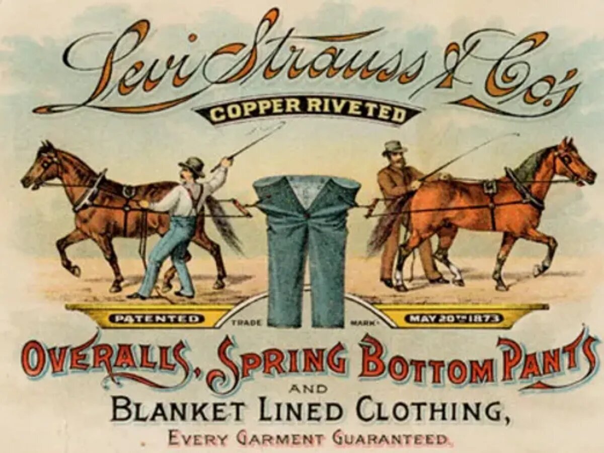 Золотая лихорадка в Калифорнии в 1848 и возможность быстро разбогатеть привлекала людей со всего мира. Одни отправлялись в Сан-Франциско, чтобы стать золотоискателями, другие снабжали их едой и инструментами. Леви Страусс и Джейкоб Дэвис решили обеспечивать золотоискателей спецодеждой. В 1872 году они представили легендарные синие джинсы и запатентованный способ крепления одежды с помощью заклепок.