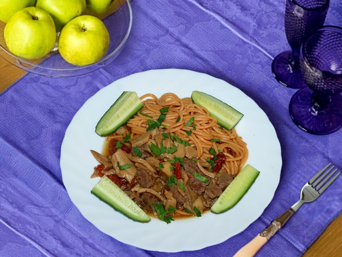 Простой рецепт для индукционной мультиварки Xiaomi Induction Heating Rice Cooke с управлением по WI-FI. Продукты 400 г говядины 400 г резаных шампиньонов (1 банка) 30 г вяленых томатов 1 ч. л. приправы для говядины (с солью) 1/2 луковицы 2 ст. л. красного сухого вина 1 лавровый лист 20 г топлёного масла Приготовление 1. В чашу мультиварки положить кусочки говядины. 2. Добавить половину нарезанной луковицы. 3. Выложить из банки шампиньоны вместе с жидкостью. 4. Положить, крупно нарезанные, вяленые томаты. 5. Всыпать приправу. 6. Добавить вино. Всё перемешать. 7. Сверху выложить лавровый лист. 8. И кусочки топлёного масла. 9. Готовить при помощи приложения Mi Home на программе «Суп-рагу» 2 ч 20 мин. В других мультиварках использовать программу «Тушение» или «Томление», время 2 ч 30 мин. 10. После сигнала о готовности, перемешать. 11. При подаче можно посыпать блюдо свежей зеленью петрушки. Другие рецепты для мультиварки Xiaomi: