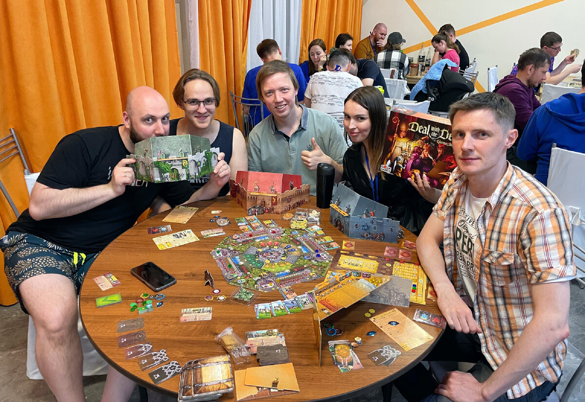 Лично я с каждой новой партией получаю в партиях в «Сделку» больше удовольствия, чем в предыдущих: единственное, мне хотелось бы как-нибудь сыграть не с компанией новых ребят, а с теми, у кого уже есть понимание ценности предложений в сундуке и полезности тех или иных карт построек — потому что даже со второй партии уже сильно проще в этом всём ориентироваться, а всем первые разы пока получалось так, что у нас везде побеждал дьявол.
