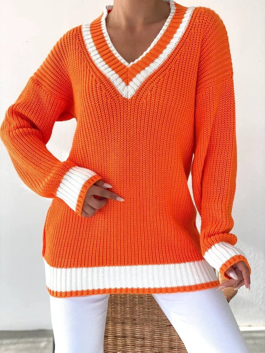 Теплый вязаный пуловер с длинным рукавом, согреет в холодную осень и морозную зиму.